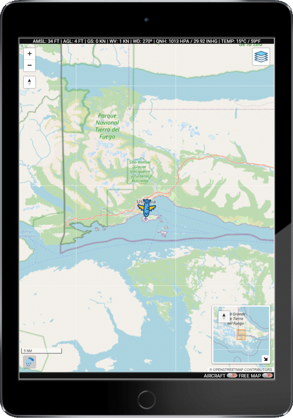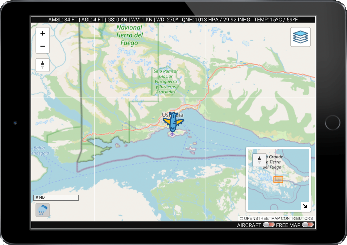 FREE MAP.- Si lo activamos el mapa dejará de seguir a nuestro avión y podremos mover el mapa libremente. Podremos ver zonas por donde no estamos volando en ese momento.